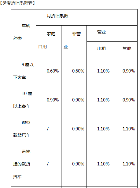 折舊金額=新車購置價×被保險機動車已使用月數×月折舊系數