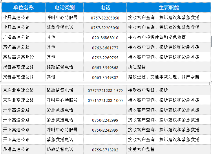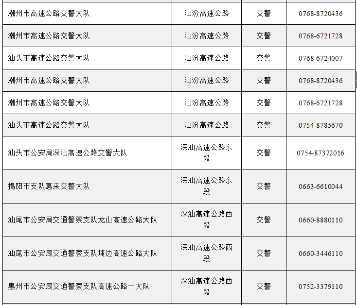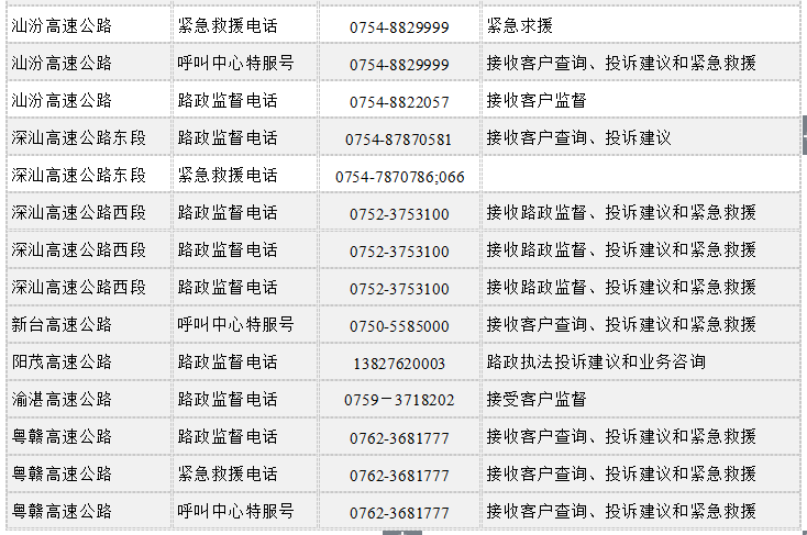 汕梅、梅龍高速 :0753--2489900 廣清高速:020--86868010