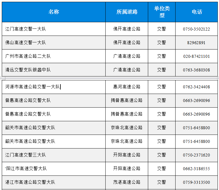京珠南(廣韶)高速:0763--4620362 京珠北高速:0751--5221002