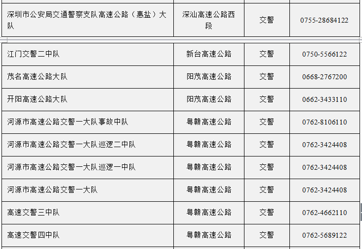 惠州、河源高速:0762-3681367 深圳高速:13926010615