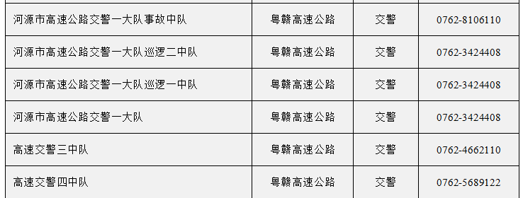 廣云高速 :0766—8555200 河龍、梅河高速:0762--8880011