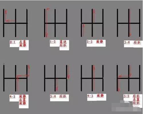 4-5,一推時緩緩發力,感覺檔位桿彈歸中間,輕柔右靠,靠到力止,順邊二推,[細細體會檔位桿彈回中間的感覺,右靠的幅度,順邊前推的行程]