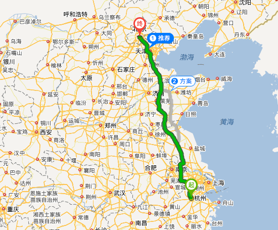 方案一:長深高速公路、京滬高速公路,用時15小時17分鐘,共1271.1公里。(最快)