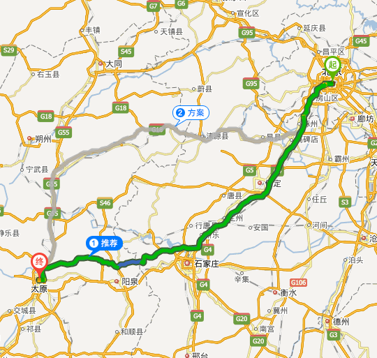 北京到太原有幾條高速? 1、京港澳高速公路、太陽高速公路 2、張石高速公路、二廣高速公路 北京到太原自駕怎么走? 1、京港澳高速公路、太陽高速公路,6小時2分鐘,489.6公里(最快、最短) 2、G107、G307,12小時19分鐘,505.5公里(不走高速) 北京到太原開車要多久?有多遠?要多少的過路費?