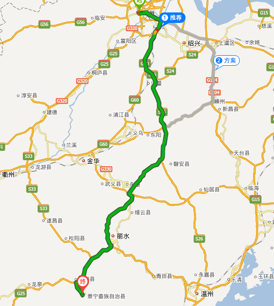 3、G60滬昆高速 > S26諸永高速 > G25長深高速