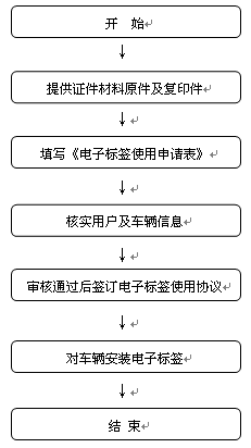 1、申辦電子標(biāo)簽卡手續(xù)個(gè)人用戶須持有效身份證件原件和復(fù)印件、機(jī)動(dòng)車輛行駛證原件和復(fù)印件到客戶服務(wù)網(wǎng)點(diǎn)申請(qǐng)辦理,并填寫《電子標(biāo)簽使用申請(qǐng)表》,通過客戶服務(wù)網(wǎng)點(diǎn)審核后,對(duì)辦理車輛進(jìn)行現(xiàn)場(chǎng)安裝。單位用戶須持有單位組織機(jī)構(gòu)代碼證(營業(yè)執(zhí)照)原件或加蓋公章的復(fù)印件、機(jī)動(dòng)車輛行駛證原件和復(fù)印件到客戶服務(wù)網(wǎng)點(diǎn)申請(qǐng)辦理,并填寫《電子標(biāo)簽使用申請(qǐng)表》,通過客戶服務(wù)網(wǎng)點(diǎn)審核后,對(duì)辦理車輛進(jìn)行現(xiàn)場(chǎng)安裝。