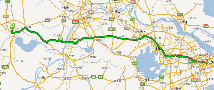合肥到上海路線地圖展示