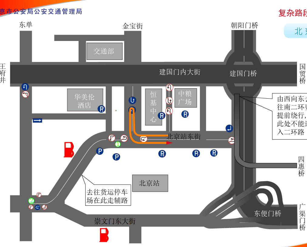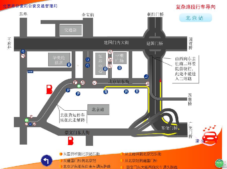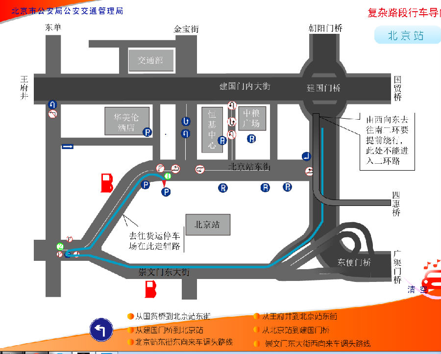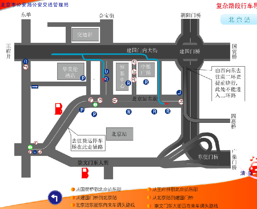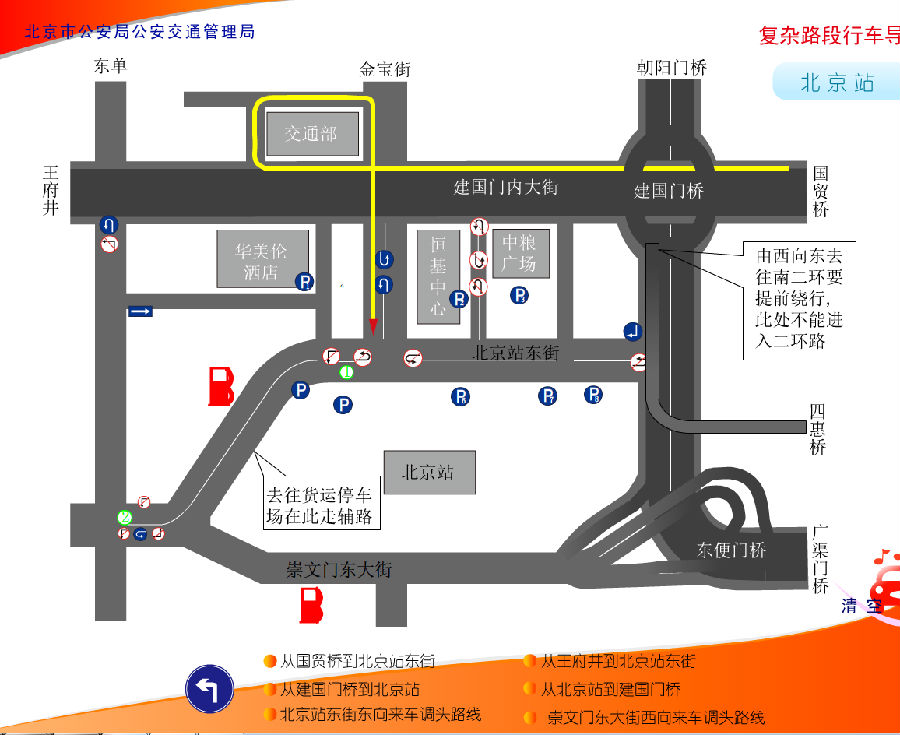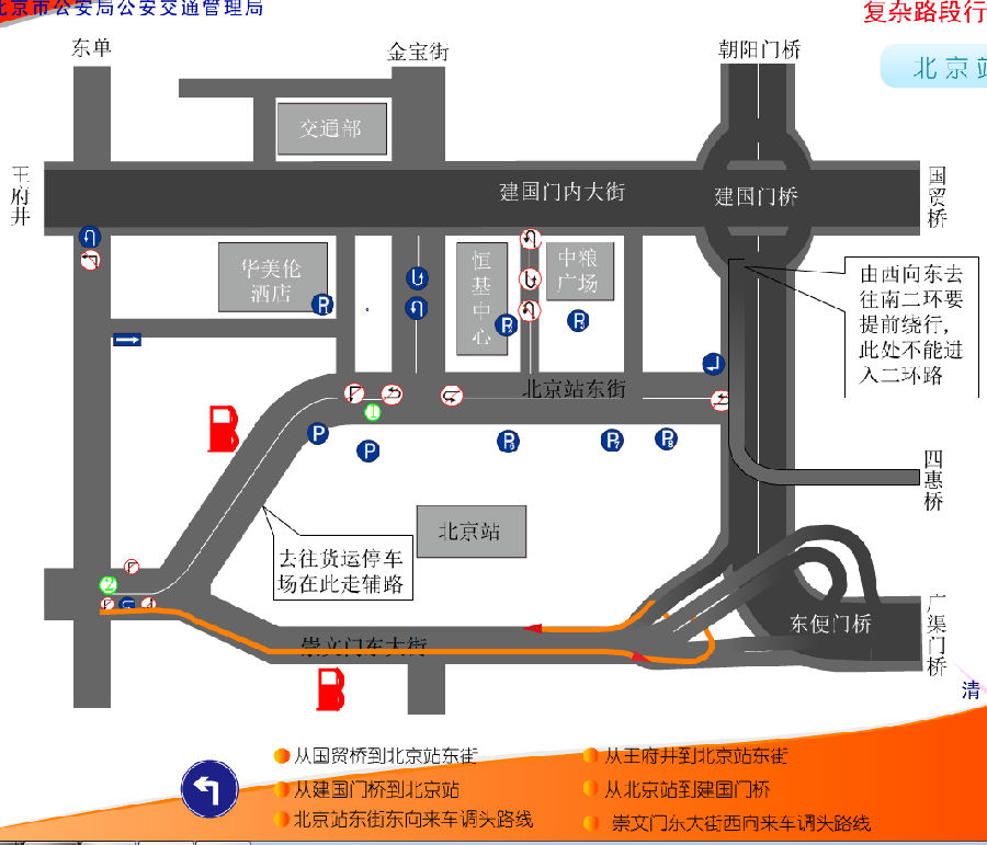 北京火車站車多人多路多,其中有建國門橋,東便門橋等立交橋,司機朋友經常搞不清方向,下面車主聯盟為大家講解北京火車站開車常用線路圖解析: