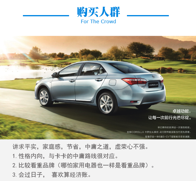 卡羅拉歷史悠久,從1966年開始,40多年的COROLLA不斷迭代更新,做工精良,在全球累計(jì)銷量超4100萬輛,可繞地球4周半。卡羅拉外觀超凡魅力,內(nèi)部空間精致,駕控表現(xiàn)完美。