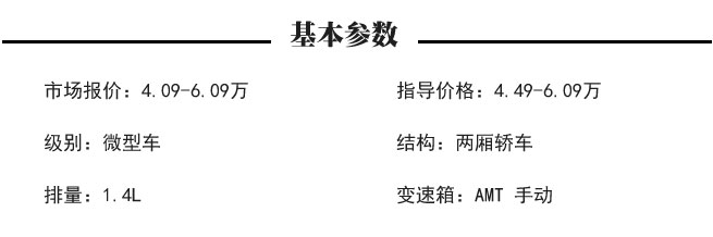 1.0L排量四缸發動機,其最大功率為51.2kW,最大扭矩為90Nm,全部匹配5速手動變速器,油耗僅為5.8L。