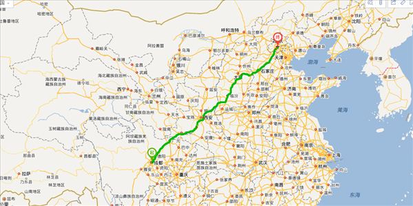 方案二:京昆線公路、綿梓公路公路、三江路公路、G108公路、公路、X226公路、福蘭線公路、S210公路、眉太線公路、麟眉路公路、S104公路、S107公路、滬霍線公路、關(guān)中環(huán)線公路、西安環(huán)線公路、航天城大道東段公路、財源西路公路、環(huán)城東路公路、S216公路、歧銀線公路、三零七國道復(fù)線公路、蛇家坡隧道公路、貢家莊大橋公路、G107公路、慶都西路公路、京深路公路、西五環(huán)路公路,用時1天21小時7分鐘,共2024公里。(不走高速,不用過路費)