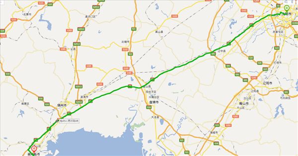 方案三:丹霍線公路、京哈線公路、X722公路、大錦線公路、渤海大道公路,用時5小時47分鐘,共308公里。(不走高速,不用過路費)