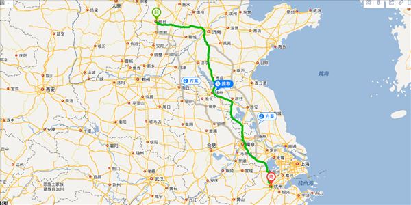 方案一:邢臨高速公路、高邢高速公路、青銀高速公路、京臺高速公路、濟南繞城高速公路、泰新高速公路、京滬高速公路、啟揚高速公路、揚溧高速公路、長深高速公路、上塘高架公路,用時12小時35分鐘,共1128公里。(最快)