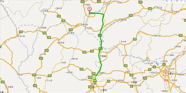 方案一:二廣高速公路、朔州繞城高速公路,用時(shí)2小時(shí)43分鐘,共213公里。(最快)