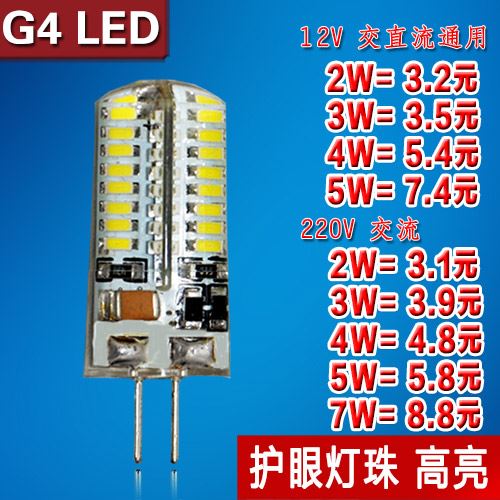 3.G4 高亮led燈珠 12V插泡水晶燈節(jié)能燈泡光源 G9鹵素3W插腳220V