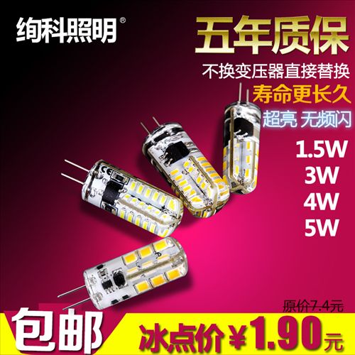 1.G4 高亮led燈珠 12V插泡水晶燈節(jié)能燈泡光源 鹵素?zé)襞?W插腳220V