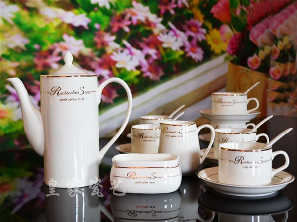 2.包郵15頭歐式骨瓷咖啡具套裝 咖啡杯 骨瓷茶具 含41%骨粉 描金邊