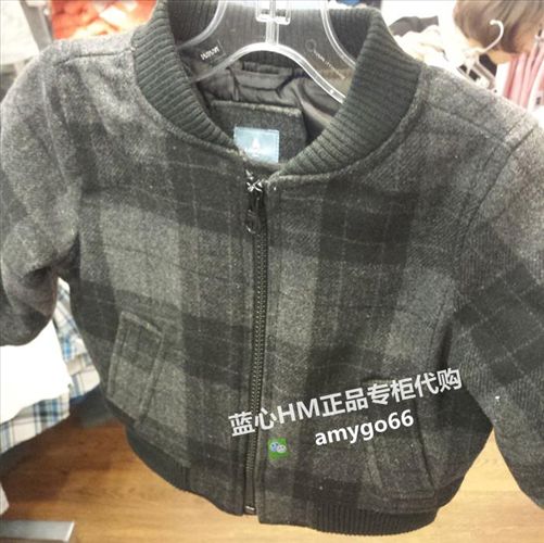 4.GAP專柜正品代購(gòu)春秋新款男童格子加厚帥氣外套兒童夾克含41%羊毛