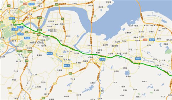 杭甬高速、杭州灣環線高速,用時1小時51分鐘,共155公里。