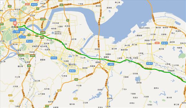 通途西路、杭州灣環(huán)線高速、機場高速,用時2小時16分鐘,共149公里。