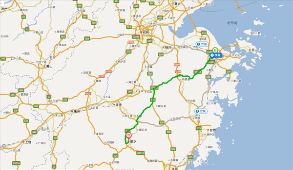 三四省道、三六省道、甬金高速、S310、諸永高速、東永高速、石四線、碧街路、溫壽線,用時5小時13分鐘,共275公里。
