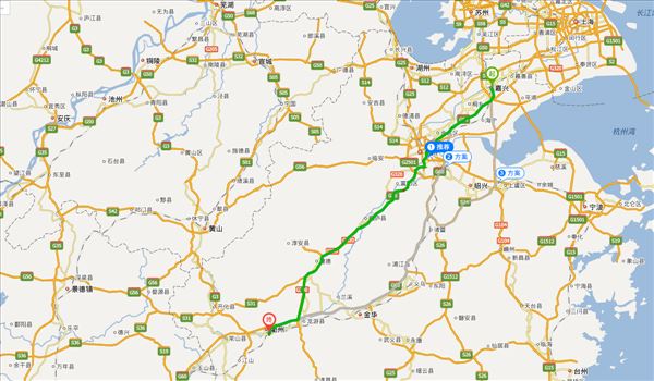 濮院大道、滬瑞線、杭海路、長深高速、杭新景高速、滬昆高速,用時5小時17分鐘,共302公里。