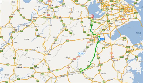 滬昆高速、上塘高架、長深高速,用時3小時53分鐘,共245公里。