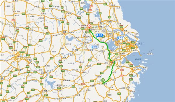 滬昆高速、杭州繞城高速、長深高速,用時5小時19分鐘,共457公里。
