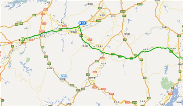 滬昆高速、長深高速、臺(tái)金高速,用時(shí)3小時(shí)32分鐘,共308公里。