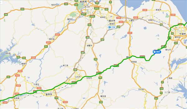 滬昆高速、甬金高速、沈海高速、甬舟高速,用時(shí)4小時(shí)49分鐘,共400公里。
