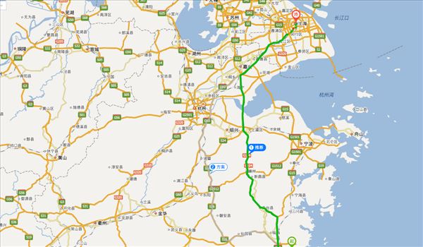馬上線、沈海高速、常臺高速、滬昆高速,用時4小時51分鐘,共367公里。