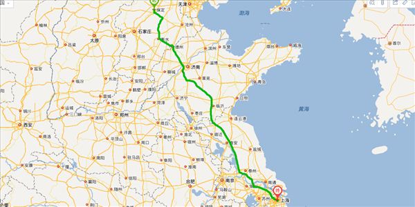 S331、京廣線、S281、運(yùn)河大道、南環(huán)路、、京臺(tái)高速、濟(jì)南繞城高速、京福線、泰化路、泰新高速、京滬高速、長(zhǎng)深高速、沈海高速、S338、滬太路,用時(shí)17小時(shí)38分鐘,共1115公里。