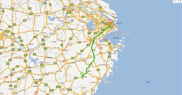 方案二:長深高速公路、東永高速公路、諸永高速公路、滬昆高速公路,用時5小時39分鐘,共466公里。(時間最快)