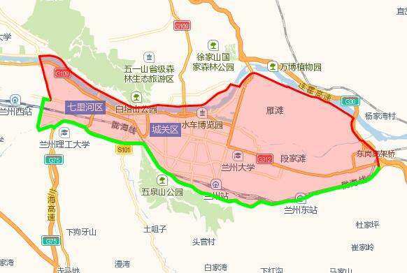 東崗立交橋以西-南山路-工林路-蘭工坪路-晏家坪北路以北-武威路-敦煌路-七里河黃河大橋以東-黃河以南(含區(qū)間內各跨河橋梁)范圍內(含上述路段,南山路、工林路、蘭工坪路、晏家坪北路、武威路除外),以及北濱河路(雁灘大橋至七里河大橋)