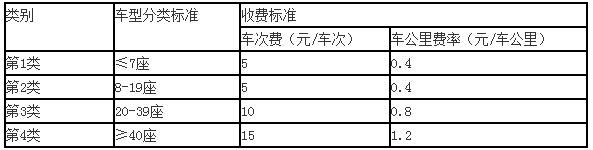 1.20座客車0.4元/車公里,車次費5元/輛次;