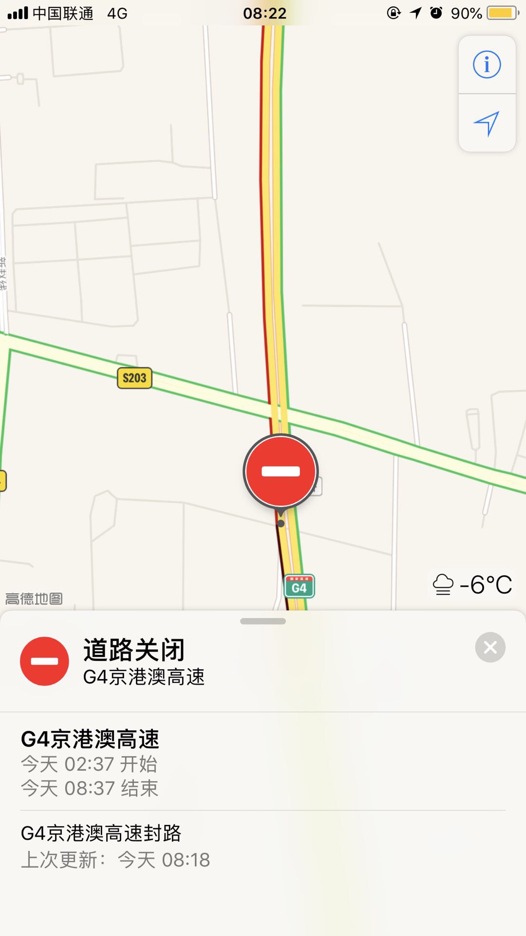 2020-01-15 10:30: G4京港澳高速出京方向K29閻村發生交通事故,正在處理中,請注意行車安全。