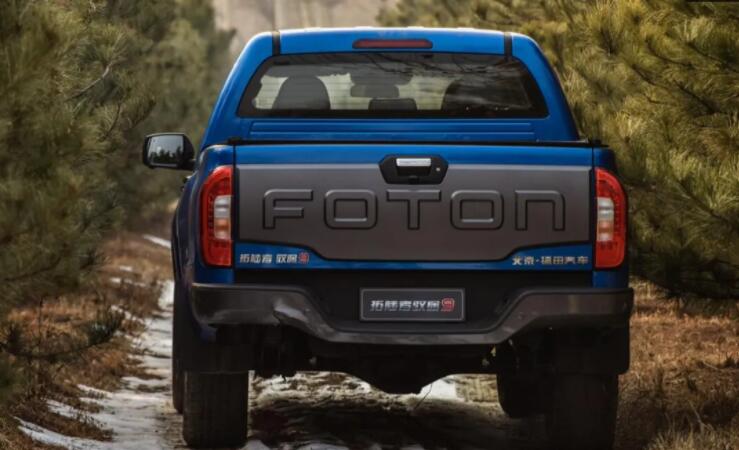 外形方面,前臉采用六邊形黑色熏黑中網,碩大的“FOTON”品牌字母鑲嵌其中,這種風格頗有幾分 “福特猛禽”的味道,整車線條肌肉感十足,給人一種威猛霸氣的感覺。