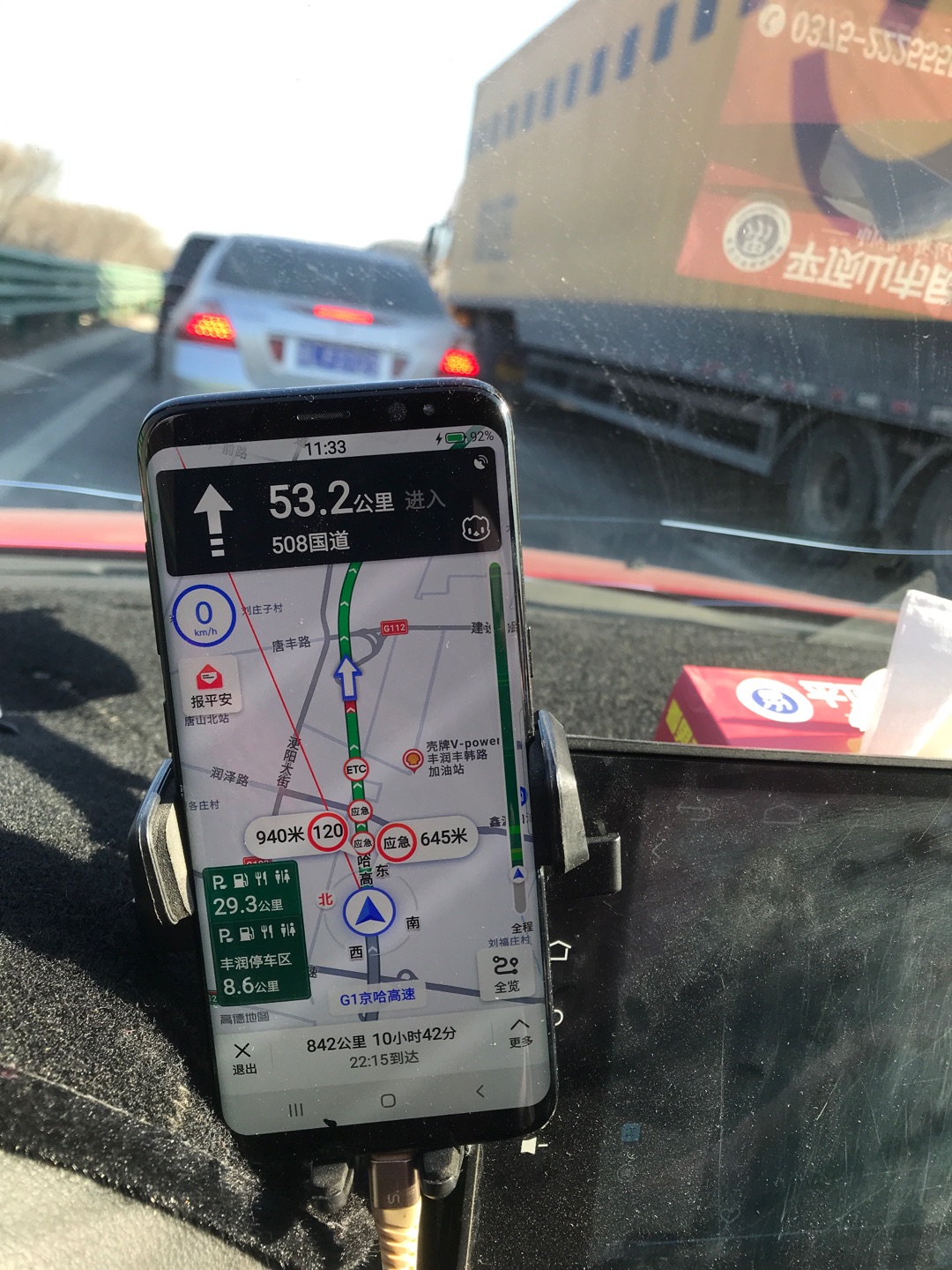 報告內容:“G1京哈高速距離豐潤服務區8.6公里處擁堵一動不動”。